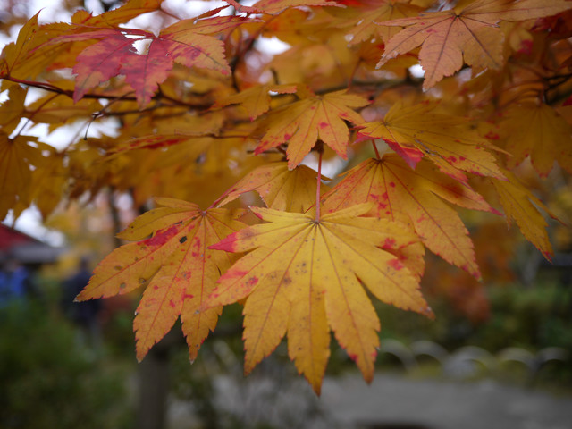半紅、半黃、半綠的楓葉